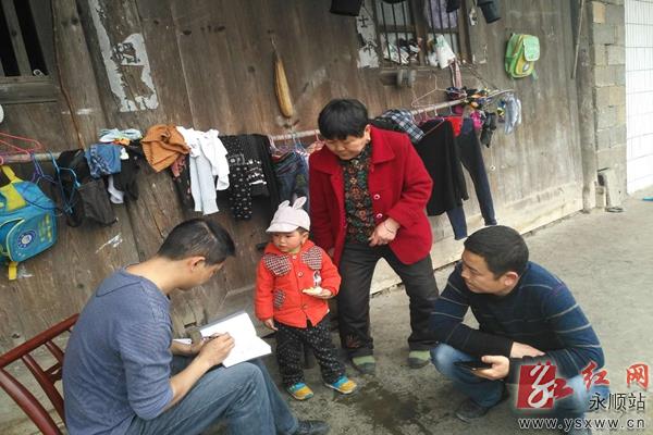 4月8日,永顺县文物局组织党员干部深入精准扶贫联系村——润雅乡柯溪村进村入户开展精准扶贫工作。活动中,该局党员干部按照各自一对一帮扶联系户的任务,分头深入联系户家中,详细了解贫困户生产、生活状况以及存在的困难和问题,根据贫困户实际情况制定帮扶计划,为贫困户出谋划策,确保 “扶贫准、真扶贫、扶真贫”。通讯员 刘波 摄