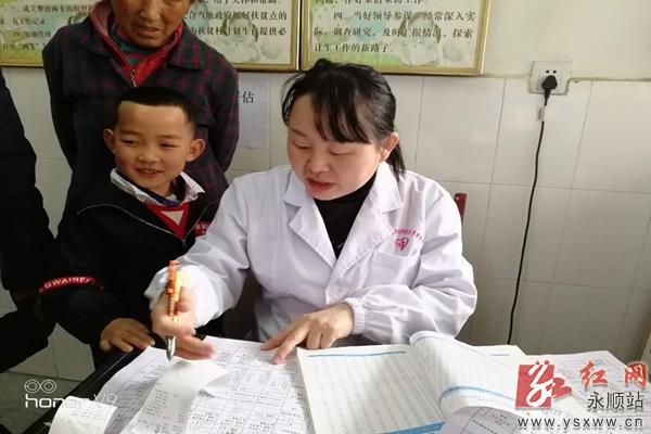 4月14日,永顺县妇幼保健院组织医护人员到毛坝乡开展科技下乡服务活动,对该乡0-6岁儿童进行免费健康体检。活动中,共体检儿童97人次,查出屈光度异常17人,龋齿12人,贫血4人,发育迟缓4人,低体重6人,超重1人。通讯员 彭秀琴 摄