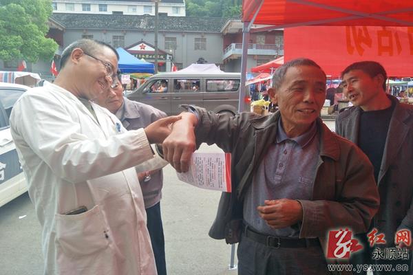 5月8日,永顺县红十字会工作人员及部分志愿者到塔卧镇开展志愿服务活动,正式拉开该县“红十字博爱周”系列活动序幕。活动现场,永顺县红十字博爱医院开展免费义诊服务活动,并提供免费咨询、免费检查、免费发放药品等服务……据统计,此次志愿服务活动义诊220人次,发放宣传资料1000余份,发放药品价值1万元,发放价值6000元的生活物品。通讯员 邹巧 蒋勇 摄