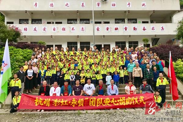 5月14日,杭州“彩虹·永顺”爱心团队在永顺县小溪镇中心完全小学举行爱心捐助仪式。此次爱心捐赠了助学关爱金6500元、彩虹奖5000元的爱心基金,和100套课桌椅、6套6层图书架、500本图书等爱心物资。 通讯员 向剑 李思立 摄