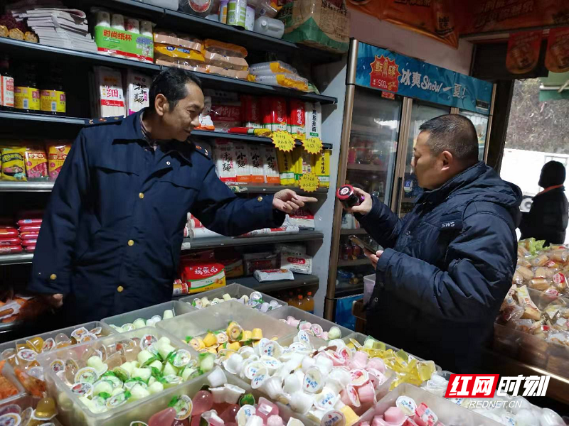 1月7日,永顺县青坪镇组织镇市场监督管理所开展节前食品安全专项整治活动,对辖区内超市、小食品店、餐饮单位进行专项检查。在检查过程中,执法人员对方便食品、休闲食品、酒水饮料、调味品、奶制品、肉及肉制品等进行了全面摸底排查,查看是否存在 “三无”、劣质、超过保质期、农产品质量安全等问题,确保人民群众节日期间的食品安全。通讯员 向琴 摄