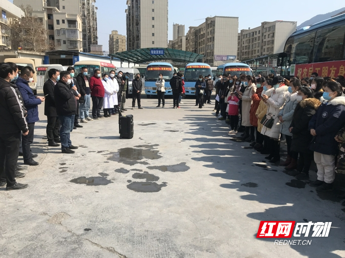 2月19日,春风和煦,阳光明媚,永顺县第一辆跨省民工返厂复工车启程。当日上午11时许,一辆车牌号码为浙B97150的浙江宁波电洲集团免费返产复工客运班车,缓缓驶进永顺县汽车站,51名永顺民工经过医务人员体温测试后,陆续上车踏上复工旅程。副县长陈利勇等到车站为民工们送行,并赠送了方便面、八宝粥、矿泉水等物资。通讯员 王承良 摄