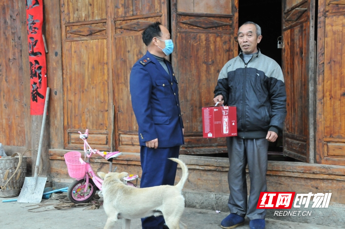 3月9日,永顺县市场监督管理局联合精准扶贫联系村——麻料、沐浴和卡木村村支两委干部逐户上门入户为群众送口罩、牛奶。活动,共送牛奶300余箱,口罩10000个。通讯员 李俊 向泓 摄