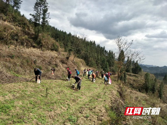 图为首车镇龙潭居委会村民栽种油茶苗现场。