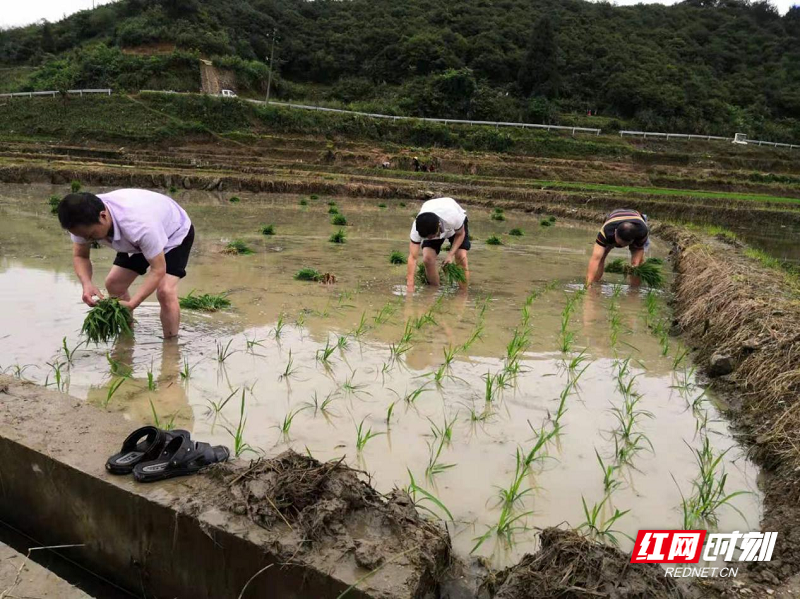5月27日,青坪镇多名基层干部主动走进田间地头,帮助百姓插秧育苗。水田上,绿油油的秧苗整齐排列,形成了一道亮丽的风景线。青坪镇用心用情解决群众“急难愁盼”问题,为群众办实事,谋幸福,切实推动党史学习教育见实效。 通讯员 王其林 张文艺 摄