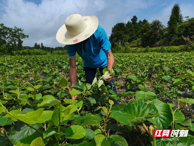 7月29日,永顺县松柏镇坝古村村民邓启友在猕猴桃苗床里修剪小苗,拔除杂草。邓启友经营猕猴桃苗圃5亩,每年销售猕猴桃育苗3万余株,收入10万元以上,今年他以30元一斤枝条引进新的品种嫁接,由于精心管理长势很好,日前已被客户以4元一株全部定购。通讯员 罗远程 熊柳 摄