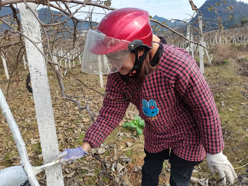 12月19日,永顺县松柏镇坝溶村村民夏梦莲正忙于给猕猴桃刷石灰水,做好预防病虫害工作,确保果树健康越冬。入冬以来,松柏镇3万余亩猕猴桃基地,数千户果农忙碌在猕猴桃冬季管理中,在整枝、修渣、防治病虫害上忙这忙那,确保来年丰收。通讯员 罗远程 蔡芳 摄