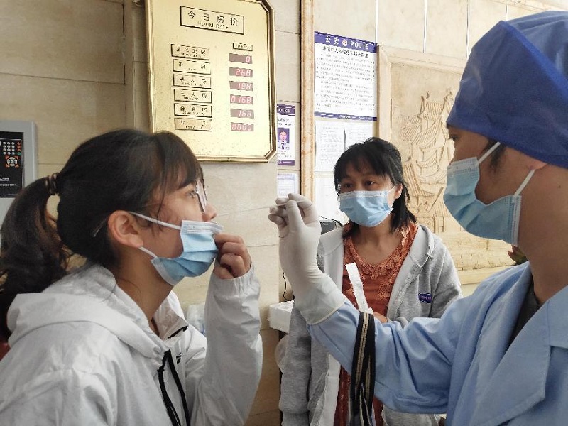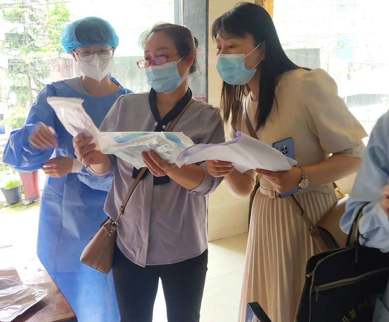 为规范标本,提高隔离人员标本检测结果准确性,疾控工作人员对在场医务人员进行了鼻咽拭子采样培训指导。培训后,采样人员现场实操,对采样过程的关键环节进行练习,进一步降低了疫情感染扩散的风险。