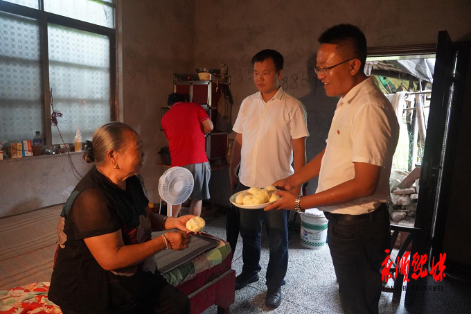 图为永顺县砂坝镇细沙坝村卧病在床的老党员屈银香收到了一份特殊的“礼物”——包子。