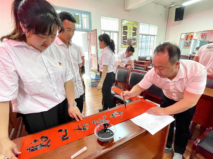 图为干部积极参与清廉书画活动