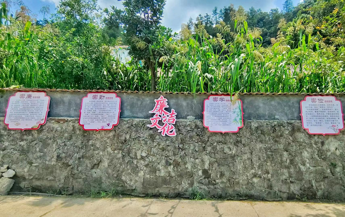 图为西歧乡中坝田村廉洁文化宣传长廊