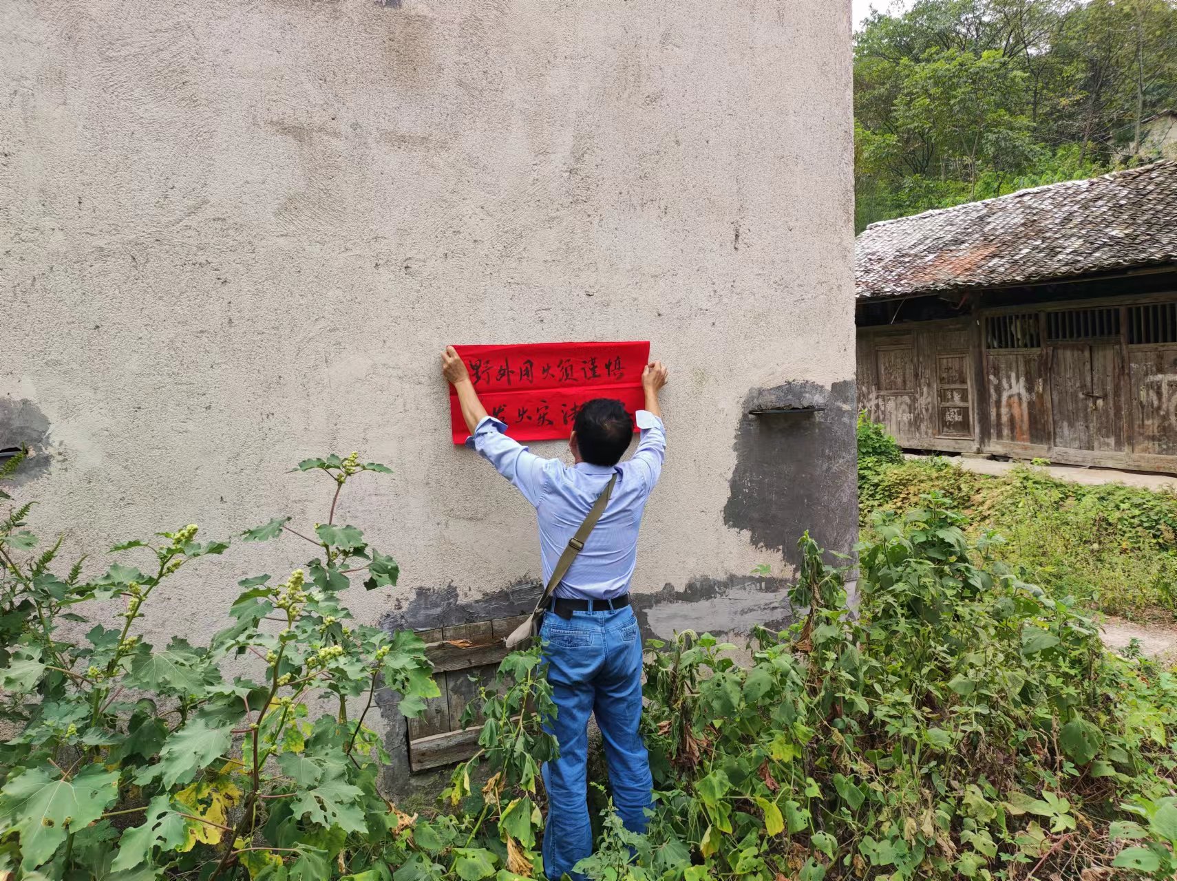 图为于家村张贴森林防火标语。