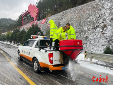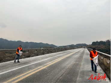 当天上午,永顺县公路建设养护中心启动应急响应,全体干线养护人员、机械设备迅速集结,奔赴保通一线。在G352、S306、S247等主干线公路上,一边采用人工抛洒防滑料,一边采用机械与人工相互配合的方式,对路面积雪进行集中清扫;桥梁、弯道等重点部位,养护人员冒着凛冽寒风,手持铁锹开展工作,做到“雪小随下随清、雪停即清”。为防止路面结冰,养护人员科学撒布融雪剂,重点对急弯陡坡、桥梁等风险路段强化处置,全力保障车辆通行安全。
