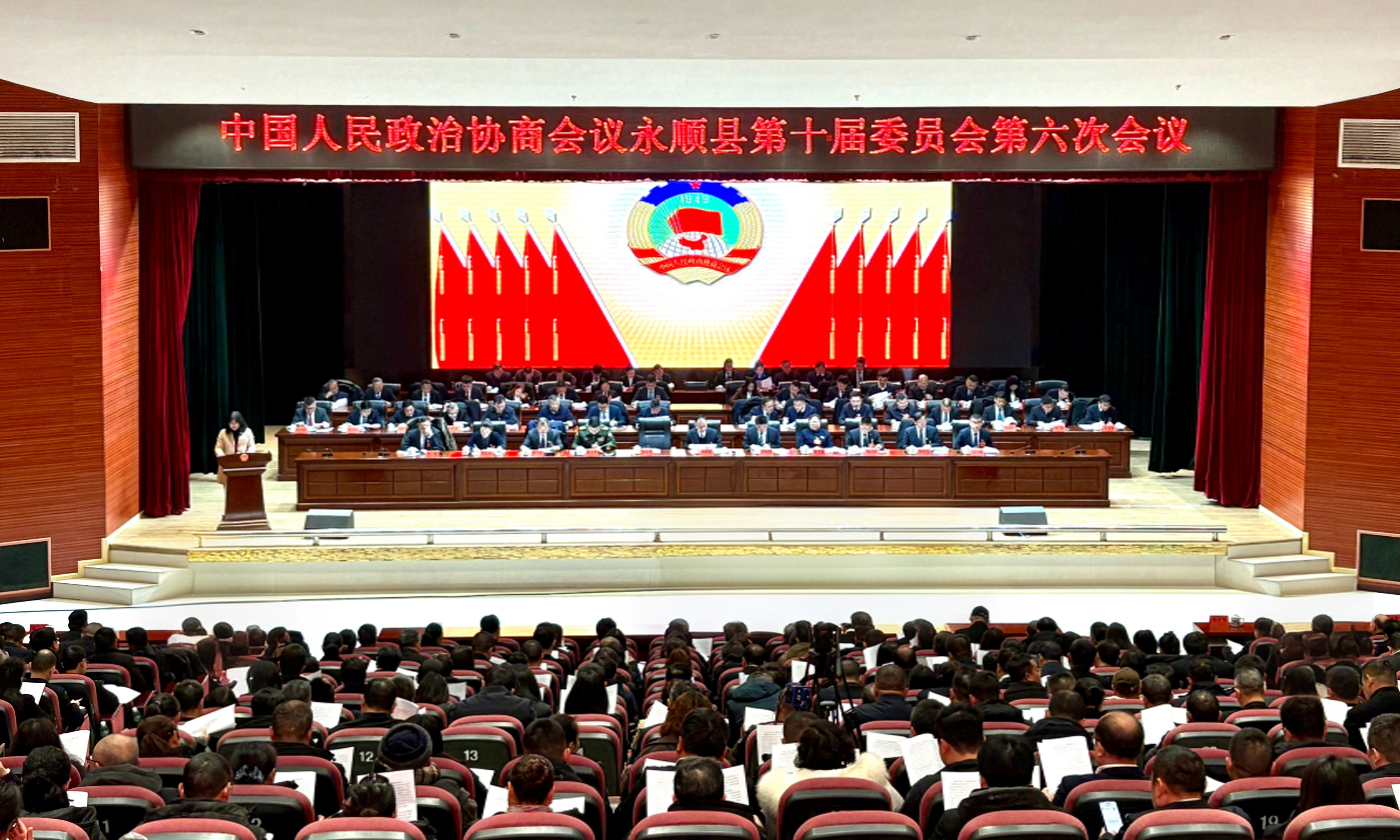 1月21日上午,中国人民政治协商会议永顺县第十届委员会第六次会议开幕。来自全县各界、各条战线的政协委员齐聚一堂,围绕“文旅融合兴县、绿色产业富民”发展战略,聚焦“四区一县”发展定位、锚定“七个更加”主要目标,切实履行政治协商、民主监督、参政议政职能,精准资政建言,为建设现代化新永顺贡献政协智慧、汇聚政协力量。全媒记者 邓旭 摄