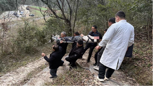 17时33分,救援人员抵达伤者所在位置,医护人员立即进行初步检查并进行临时处置。随后,救援队员与两名热心群众合力将伤者抬上担架,于17时46分安全护送下山并移送至等候的救护车上。目前,伤者现已转送至张家界市人民医院接受进一步治疗。
