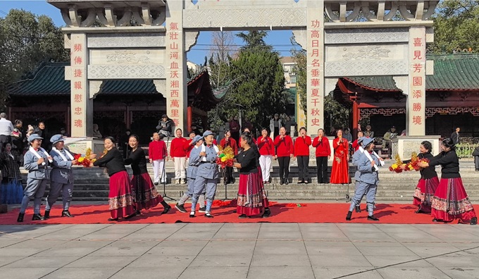 为重温党的光辉历史,抒发老年人爱党爱国的情怀,1月8日,永顺县老年大学综合音乐班与县爱歌合唱团在县烈士公园广场举行“红歌颂党恩,管弦迎新春”文艺汇演活动。活动中,老年朋友们身着盛装,激情满怀,兴致昂扬的唱响一首首经典红歌,抒发对党和祖国的赤诚热爱,展现出老年朋友爱我中华,老有所为,老有所乐的良好精神风貌。通讯员 王先明 摄
