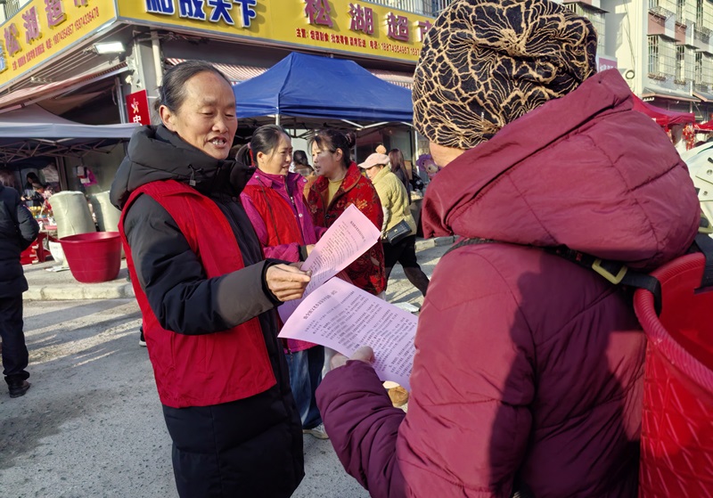 2月11日,正值松柏镇赶集日,该镇联合派出所开展节前安全宣传活动。工作人员在集市疏导交通、排查隐患,并向过往群众发放了《致全镇父老乡亲的一封信》,宣传用火用电、安全用餐、取暖出行、健康保障等安全注意事项,全力营造平安、有序的节日环境。通讯员 周俊 雷夏铭 摄