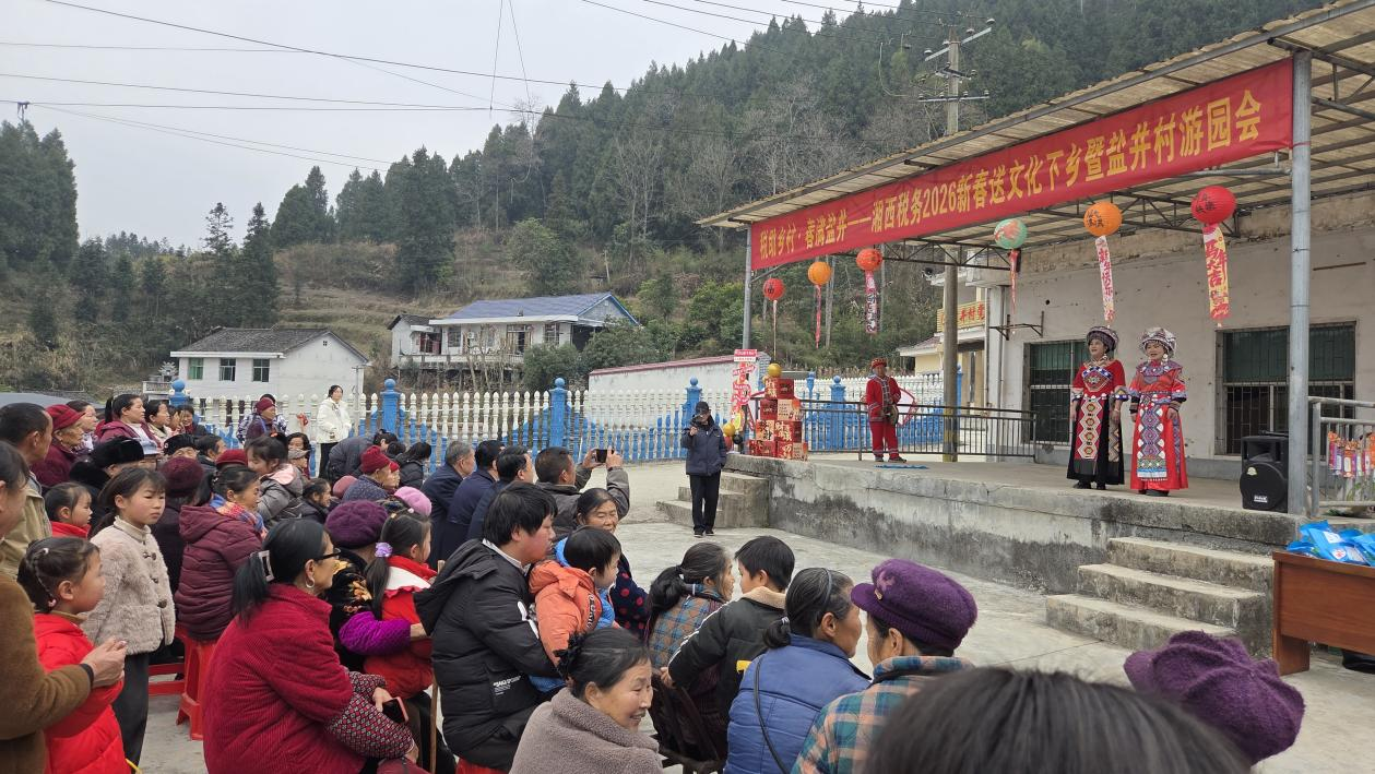 2月4日(农历腊月十七),恰逢立春,永顺县灵溪镇盐井村村民文化广场灯笼高挂、鼓乐喧天,“税助乡村·春满盐井”新春游园会热闹开场。土家打溜子、土家迎客歌萦绕乡间,税务干部与村民们围坐互动,一幅文化赋能、税民同心的振兴画卷徐徐展开。这正是湘西州税务局驻村工作队2025年实干帮扶的生动写照。