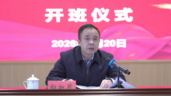 图为永顺县委书记向加茂作开班动员讲话