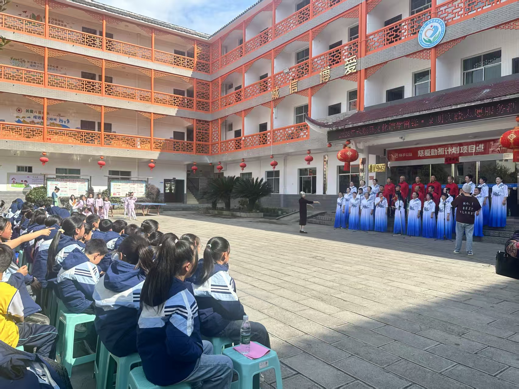 演出现场,合唱团成员精神抖擞,倾情演唱《我们的中国梦》《土家最爱咚咚喹》等曲目,悠扬的旋律、真挚的情感,深深感染着每一位孩子。孩子们沉浸其中,脸上洋溢着幸福的笑容,现场掌声阵阵,氛围温馨融洽。