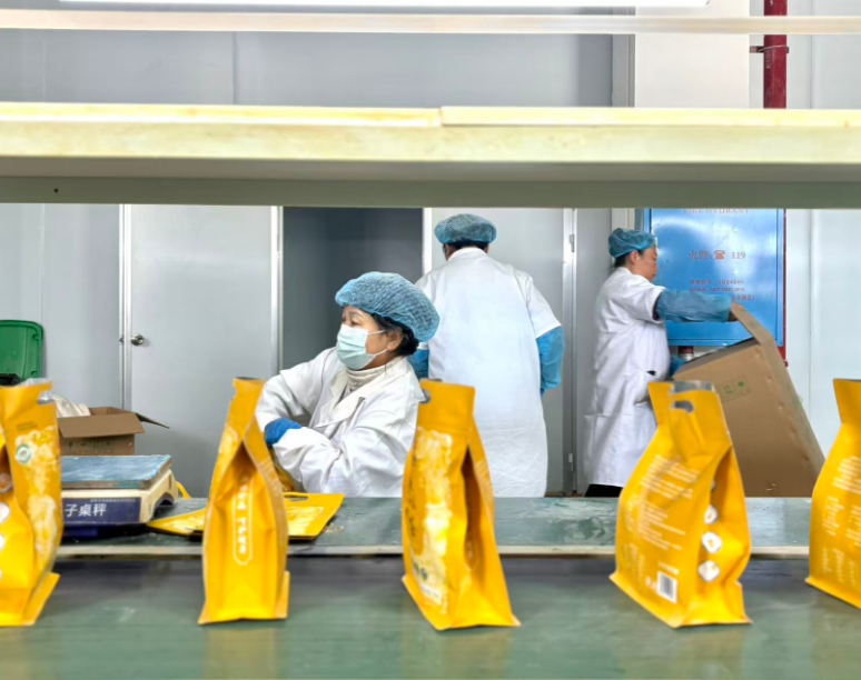 图为湘西湘福粮油食品有限公司莓茶包装现场