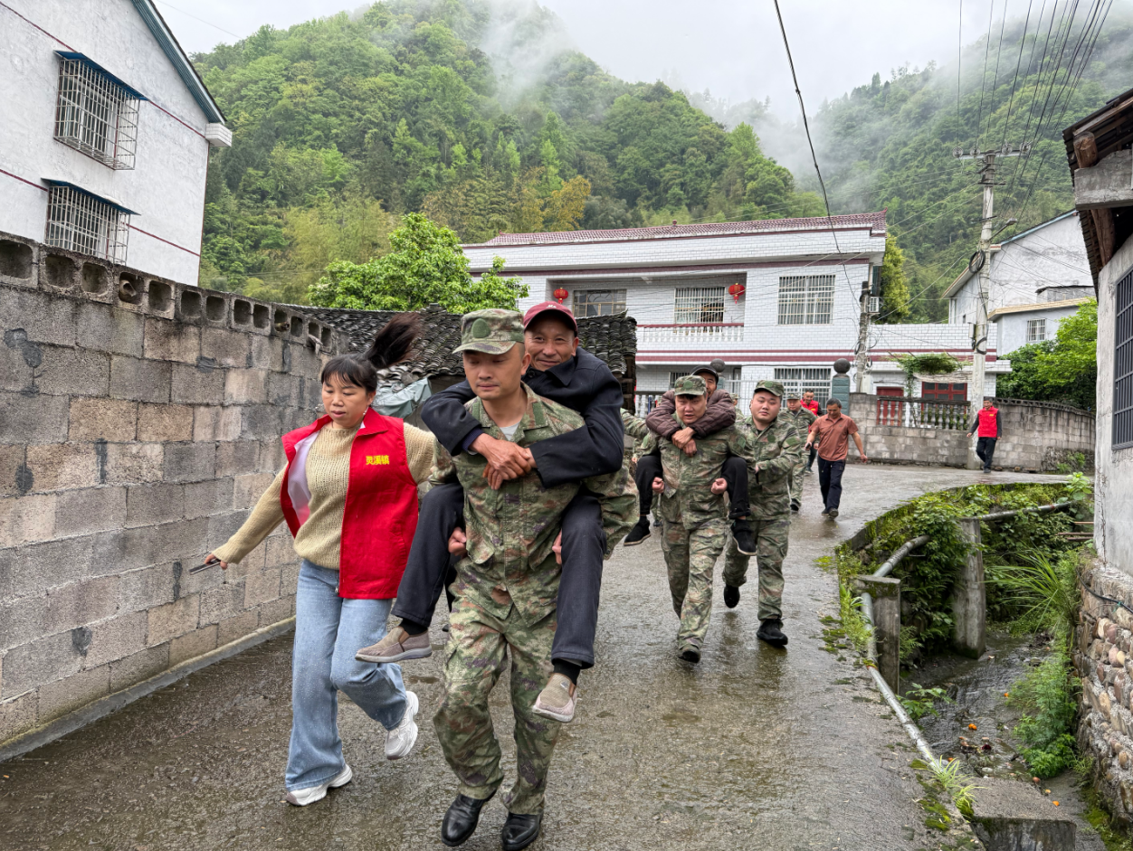 演练模拟持续强降雨引发山体滑坡险情,隐患点边坡裂缝扩大,滑坡风险加剧。随着预警警报、铜锣声响起,监测员第一时间上报险情,镇应急指挥部迅速启动应急预案,各工作组快速响应、协同作战。转移安置组逐户动员群众,优先帮扶老弱病残人员沿预定路线撤离至安全区域;查险组深入隐患点排查险情;医疗救护组及时开展伤员应急救治;民兵应急队高效开展除险作业,各环节衔接顺畅、处置规范,顺利完成险情上报、群众转移、伤员救治、警报解除等全流程演练。