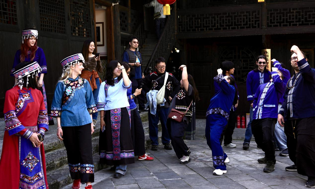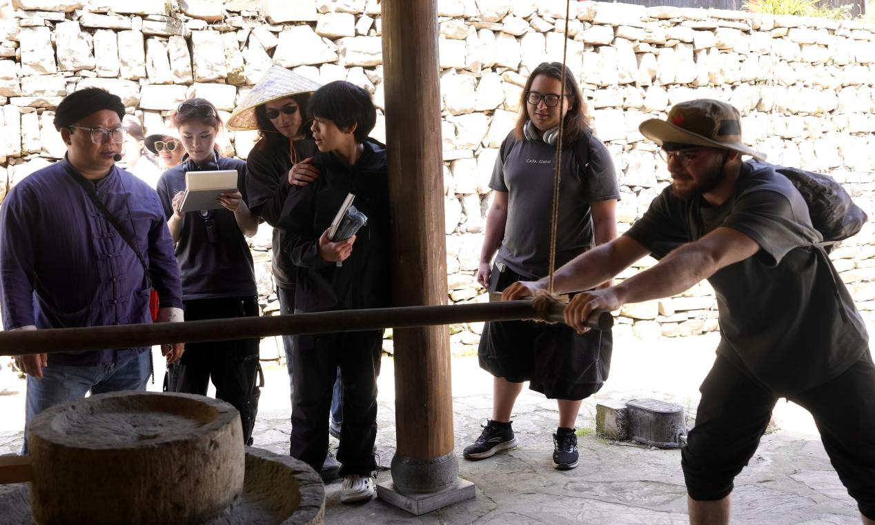 在双凤村的一栋老吊脚楼前,来自意大利的预科生马可驻足许久。他手中的素描本上,屋顶的弧线与山坡的走势相互呼应。“这里的建筑像是长在山里,吊脚楼给了我完全不同的空间感受。我希望以后的艺术创作中,能有更多中国的民族元素。”