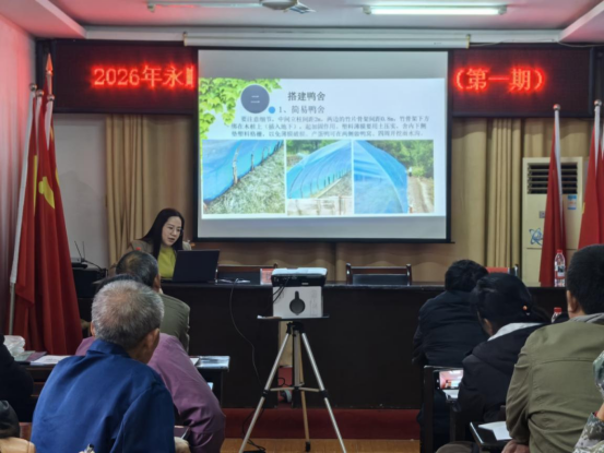 永顺融媒·今日永顺客户端4月14日讯(通讯员 田渝川)4月14日,永顺县畜牧水产事务中心组织开展永顺凤头鸭养殖技术培训,进一步推广科学养殖模式,提高养殖整体水平,提升产业效益。来自泽家、西歧两个乡镇的30多名永顺凤头鸭养殖户参训。
