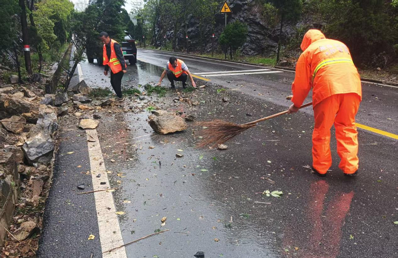 因大雨导致县域公路出现塌方、落石、树木倒伏等险情,4月20日,永顺县公路建设养护中心及时启动应急预案,及时分组开展公路巡查及防汛应急抢险行动。行动中,该中心组织人员清理老司城公路X026K2+300鲁那坡路段发生塌方及树木倒伏、国道G209K2552十400m发生边坡塌方、国道G352线K41+800米处散落一地边坡落石、省道S247线永小路狗爬岩路段发生边坡落石等,切实消除了安全隐患,道路恢复安全畅通。通讯员 喻开发 摄