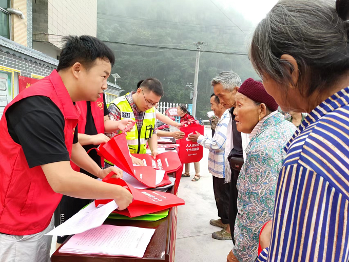 给群众发放优化营商环境、安全生产等宣传手册