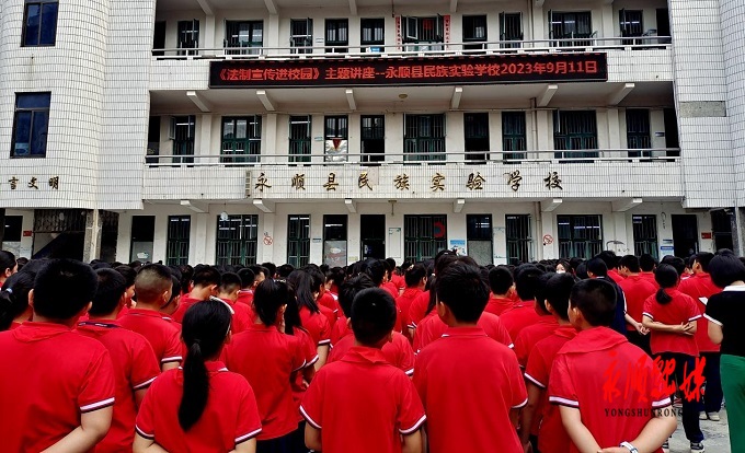 9月11日,永顺县城中派出所民警到县民族实验学校开展“法制宣传进校园”主题讲座,主持人根据当前社会和校园周边的安全形势,就交通安全、防校园欺凌、防陌生人欺骗、防性侵害等方面作了详细的讲解,引导学生明白违法的严重危害,知晓紧急情况的部分自救方法,进一步增强法治观念、提高法律意识,做一个知法、懂法、守法的好公民,营造文明、平安、和谐的校园育人环境。通讯员 向小莲 摄