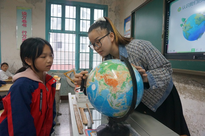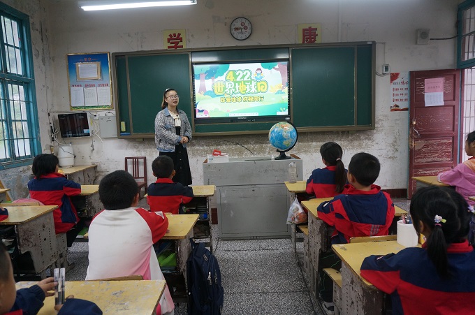 为迎接世界地球日的到来,4月21日,永顺县灵溪镇吊井九年制学校开展“珍爱地球·你我同行”主题活动,组织学生对照世界政区图,传授生态环保知识,介绍世界地球日的由来和生态环境保护的相关知识,培养孩子们从小关爱地球、保护环境、共享绿色家园的意识。通讯员 吴华 摄