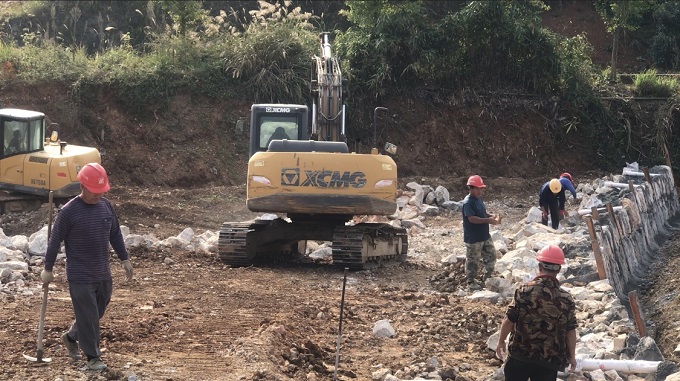 10月24日,永顺县红色旅游公路塔西公路石堤镇西眉村现场机声隆隆、人喧马嘶,施工人员正在进行挡土墙建设施工。塔西公路北起湘鄂川黔革命根据地塔卧镇丁家院子,途经友谊、车坪、咱河、天堂等村,南至石堤镇西眉村与石永公路相接,全长19.751公里,预算总投资1.5亿元,按三级公路标准建造,工期18个月。该工程于2022年9月破土动工,目前已完成土石方、挡土墙、征地拆迁等。通讯员 王承良 摄