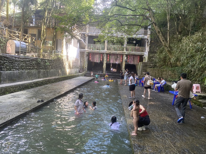水池水温低,刚进入水中,略感冰凉。整个洞穴由于森林茂密遮挡,气温在20度以下,体感凉爽舒适宜人,是避暑的好地方。许多孩子在戏水纳凉的同时,一家人还在池边进行烧烤,在凉爽的环境里享受舌尖上的美味。