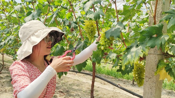 近年来,永顺县充分利用当地土壤、气候优势,按照“一村一品”特色产业发展思路,因地制宜发展种植猕猴桃、黄桃、草莓、葡萄等特色水果产业。盛夏时节,各地水果园散发出的醉人果香,吸引众多市民游客前来采摘,带动果园采摘、农事体验、休闲观光等特色乡村旅游产业,促进农民增收,助力乡村振兴。图为8月7日,游客在灵溪镇吊井村葡萄园体验采摘乐趣。通讯员 唐佛港 摄