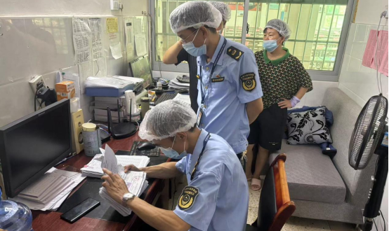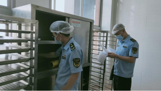 检查中,执法人员对食物加工制作过程、食品留样、从业人员健康管理、食品原料进货查验及索证索票等环节进行了检查,重点检查食品贮存、包装、标识等是否规范,是否存在销售过期、霉变食品等违法行为。同时对学校秋季校服采购情况进行详细了解,查看了相关批准文件、收费公示情况及收费账本等内容,督促校方落实校服“双送检”制度,切实保障学生校服质量安全。