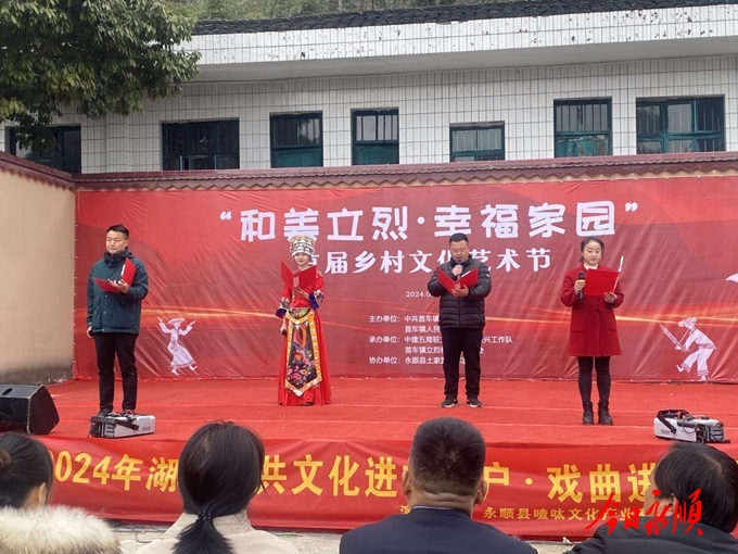 永顺融媒·今日永顺客户端1月21日讯(全媒记者 向昌明)以“和美立烈·幸福家园”为主题,1月20日,永顺县首车镇立烈村举办首届文化艺术节,组织了“舞台艺术展演、送春联、打糍粑、吃团圆饭”等系列群众喜闻乐见的文体活动。永顺县委常委、县委统战部部长李玉芳,副县长刘冰,首车镇镇村干部,立烈村部分乡贤和400多名村民共聚一堂,欢度佳节。