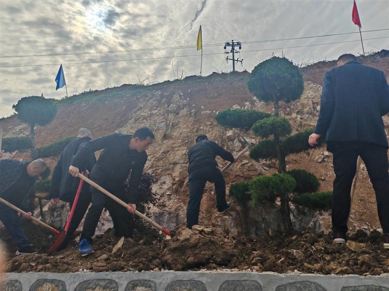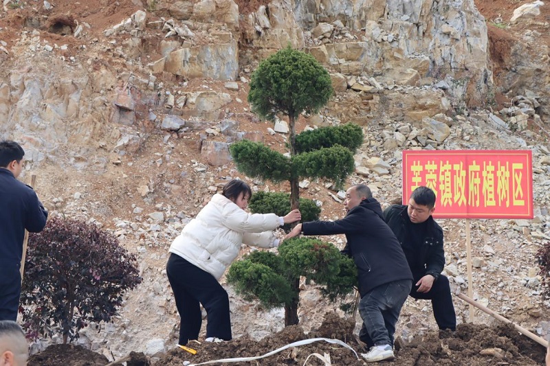 植树活动现场,大家纷纷撸起袖子、拿起铁锹、锄头等工具投入到植树活动中。挖坑、扶苗、个个挥锹培土,栽树播绿,团结协作,干劲十足,呈现出一派热火朝天的忙碌景象。在大家的紧密配合下,经过三个多小时的辛勤劳动,芙蓉镇将负责区域内的“责任树”植树任务高质量完成,新培植的树苗给芙蓉镇花月湾增添了一片绿意,在春日里展现出勃勃生机。
