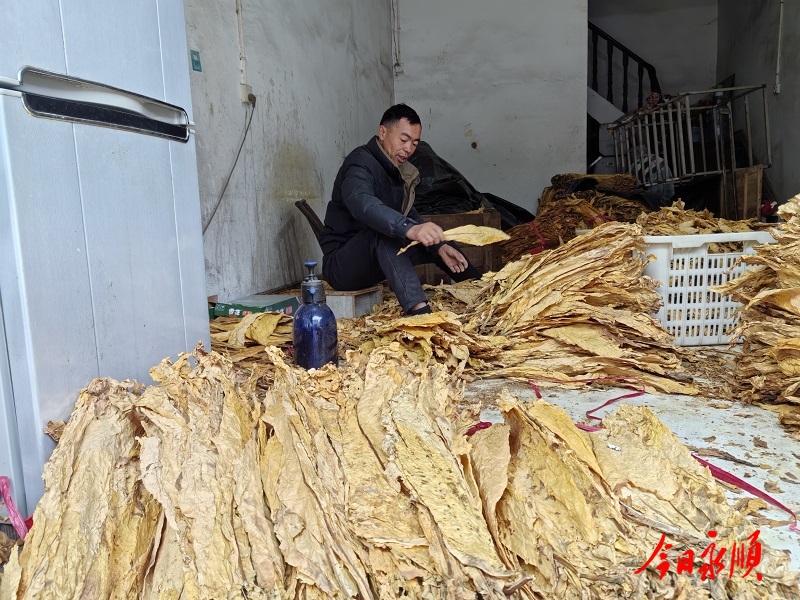 10月22日,松柏镇松柏社区一名烟农正在仔细地进行烟叶初选。今年,该烟农种植烟叶30亩,收获4500余公斤,一片片金灿灿的烟叶,不仅色泽喜人,更预示着可观收益。松柏镇积极推行“借地生财”,狠抓烟叶生产,通过惠农奖扶、技术跟踪等有效措施,今年该镇共种植烟叶7500余亩,带动500多户农户增收致富。通讯员 罗远程 雷夏铭 摄