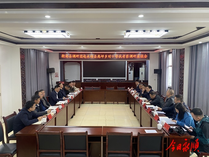 考察调研对口帮扶工作座谈会上,高坪乡相关负责人汇报了高坪乡基本情况及衡南县对口帮扶工作开展情况。