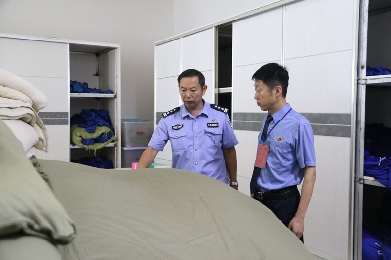 于永亮一行深入监区、医务室、监控室、食堂等关键场所,对消防设施、安全通道、监控运行、食堂卫生、食品留样、食药品期限、出所就医、生活物资储备、在押人员身体状况以及监室违禁品等情况进行细致排查。