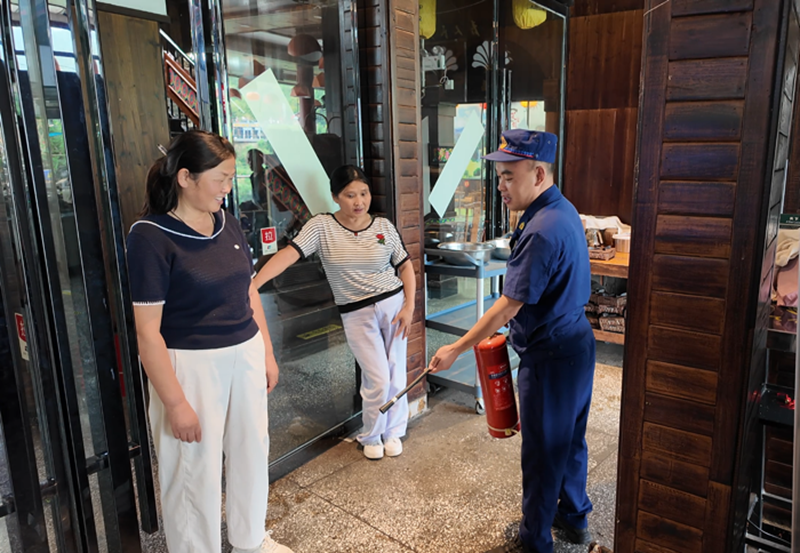 芙蓉镇专职消防队员排查景区商户消防器材安全隐患