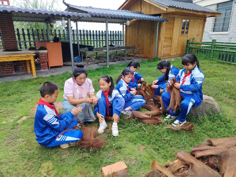 研讨过程中,还结合当年红军大战十万坪的历史资料,运用现代技术,还原了红军战士们用棕树皮做棕衣、搓棕绳的场景,让学生在了解棕树实用价值的同时,还了解到在中国革命历史发展进程中,棕树作出的巨大贡献。