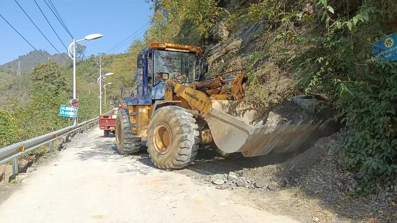 近日,受天气和风化影响,农村公路Y483线县城自来水厂至县委党校路段和Y548线灵溪镇那住村黒龙窟路段发生了边坡落石及塌方现象,永顺县公路建设养护中心接报后,及时组织养护人员和铲车到险情现场进行了清理,消除了安全隐患,有效地保障了县域公路安畅通行。通讯员 喻开发 摄