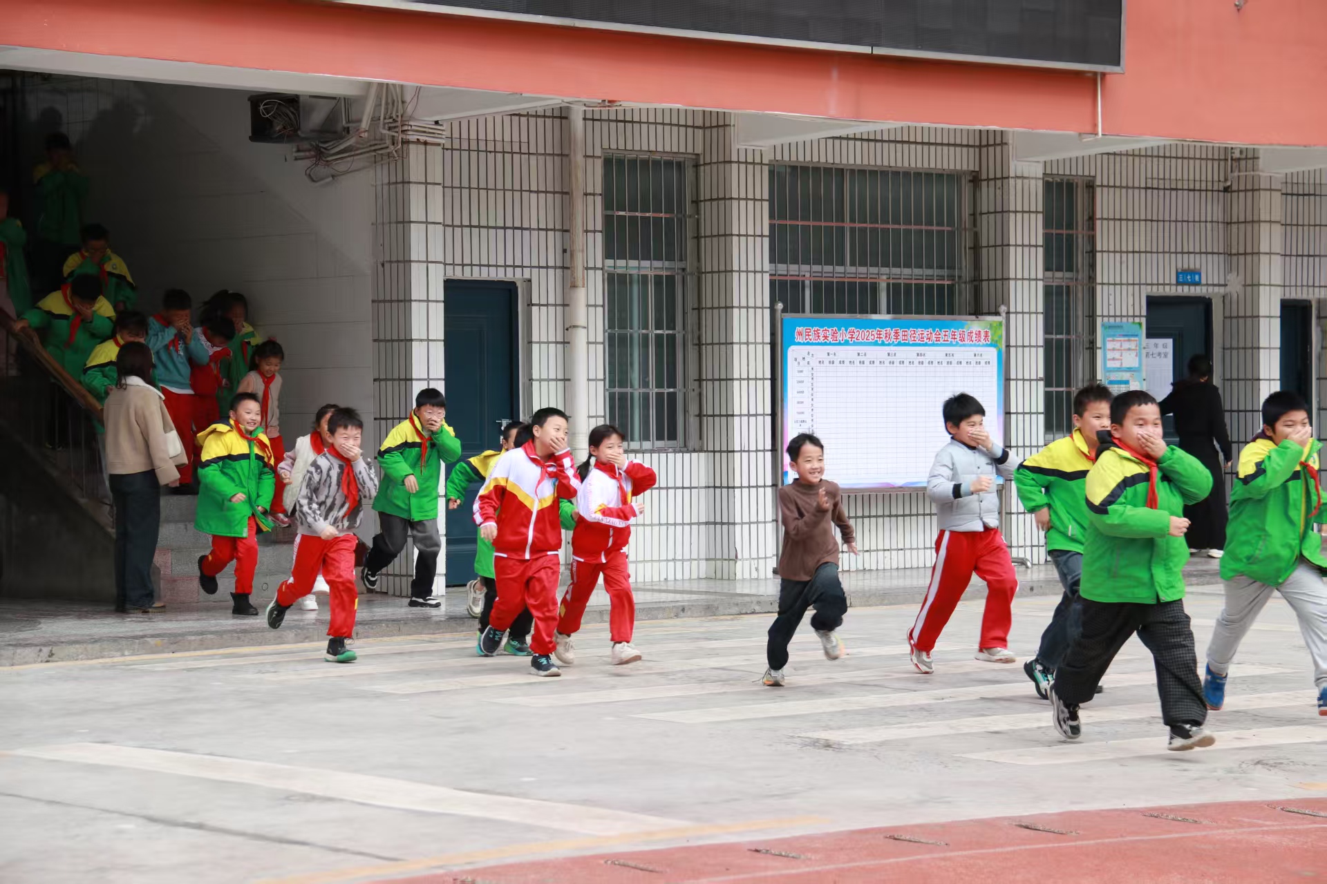 活动中,随着急促的消防报警声响起,应急疏散演练正式启动。各班学生在班主任及任课教师的有序引导下,用手捂住口鼻,弯腰低姿,沿着指定疏散路线快速、有序地从教学楼向学校运动场集结。整个疏散过程紧张有序,无拥挤、推搡现象,全部安全抵达指定区域,疏散演练达到预期效果。