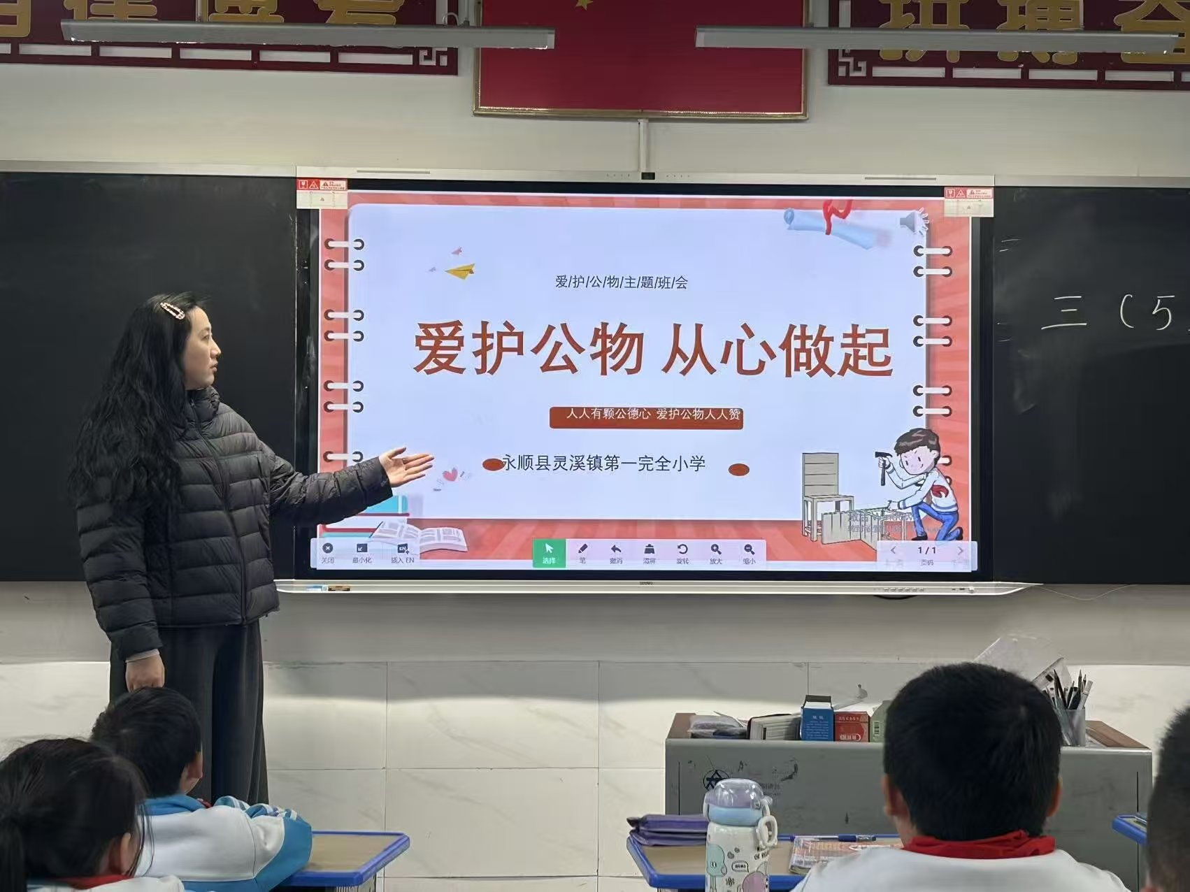 11月12日,永顺县灵溪一小开展“爱护公物,从心做起”习惯养成教育主题班会,让学生养成“人人爱公物、人人护公物”的好习惯,增强爱护公物的责任感,让文明素养教育落地生根。通迅员 王飞红 黄树林 摄