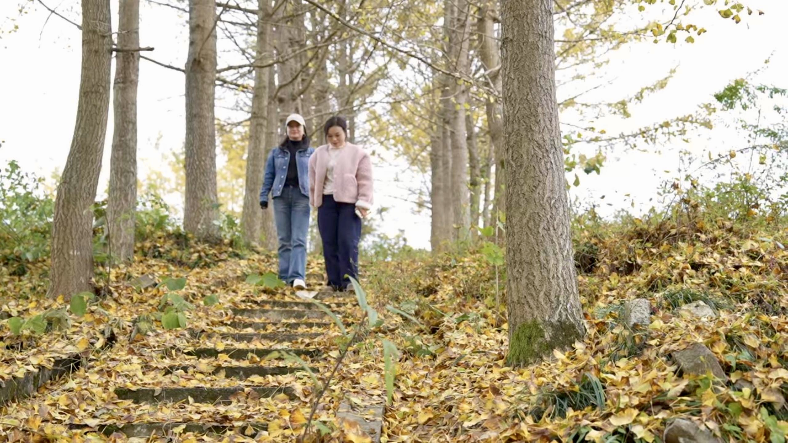 片片落叶在空中打着旋儿,最终轻盈地投入大地的怀抱,渐渐铺成一条绵软的金色小道,踩上去沙沙作响。游人们或驻足凝望,或举镜留影,每一帧画面都定格着这个季节独有的浪漫。