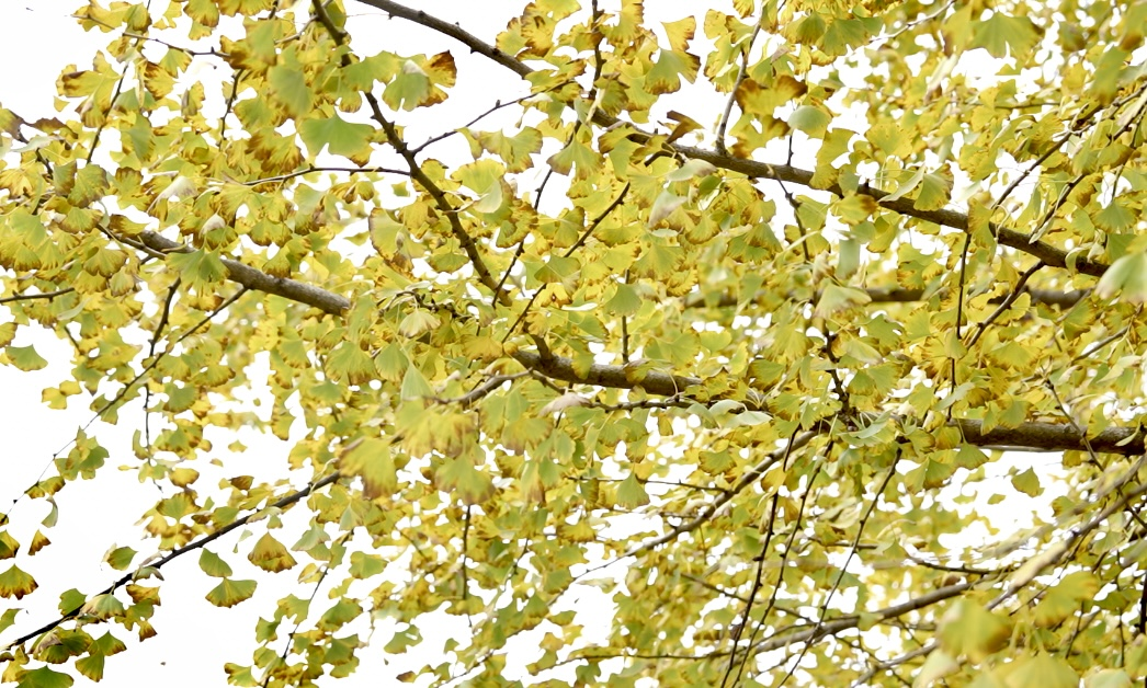 挺拔的银杏树伸展着遒劲的枝干,将一片金灿灿的华盖擎向湛蓝的天空。阳光透过枝叶的缝隙洒落,为每一片扇形叶片镀上温暖的光晕。微风轻拂时,万千金叶翩跹起舞,宛如自然之手拨动的金色风铃,在初冬的空气中荡漾开柔和的韵律。