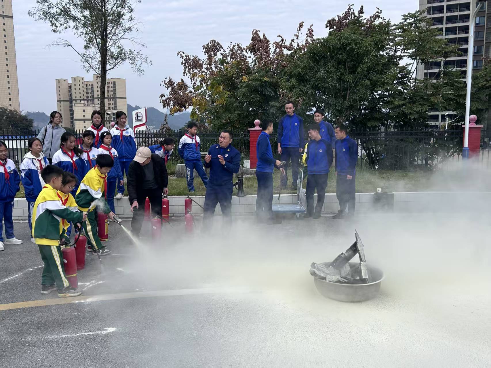永顺融媒·今日永顺客户端11月14日讯(通讯员 张晶 李小斌)“以前只在课本上看过‘提、拔、握、压’,今天亲手按下灭火器手柄,看着干粉喷出来的那一刻,我才真正知道怎么用它灭火!”11月14日上午,永顺县灵溪镇司城若云学校40余名师生走进县消防救援大队零距离体验消防“神装备”。
