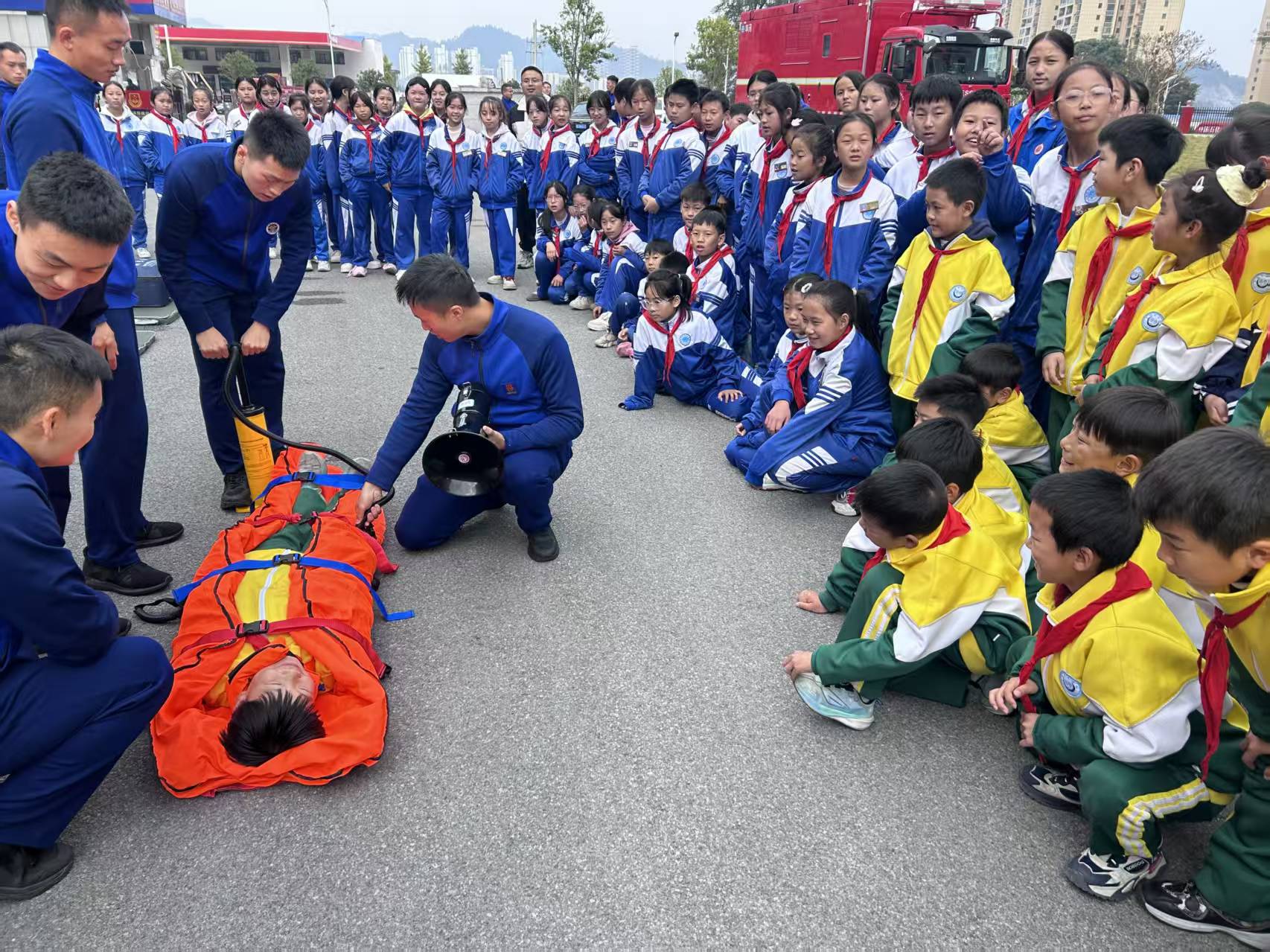 活动中,消防员为学生们开设了一堂生动的“消防装备课”,系统介绍了液压扩张器、机动链锯、无齿锯、镇压式排烟器等十余种高精尖救援装备的用途与性能,从救生抛投器到紧急撤离信号装置,每一件装备都让学生们目不转睛,全面了解了火灾救援全过程,直观感受到科技赋能下消防救援的精准与高效。互动体验环节里,学生们热情高涨,或穿上厚重的灭火防护服,感受救援设备的重量,或体验充气式救援担架,模拟火灾现场抬运,或手提灭火器,在消防员指导下精准扑灭火源。学生们不仅学到了实用的消防知识,更感悟到消防员们逆火而行、守护生命的高度敬业精神和奉献精神。
